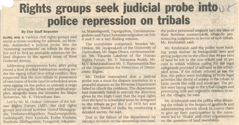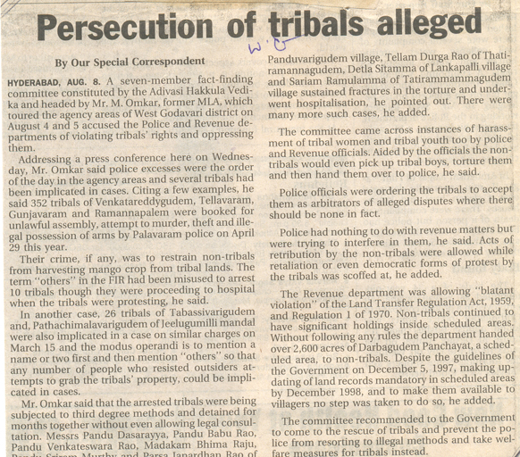 Police put Pressure on NGO Backing Tribals |