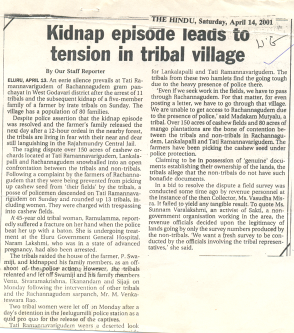 Police accused of harassing tribals of Jeelugumilli |