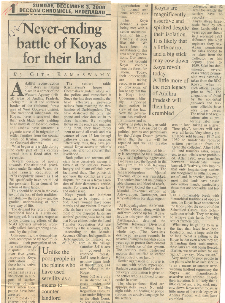 Tribals to Continue Struggle for Land |